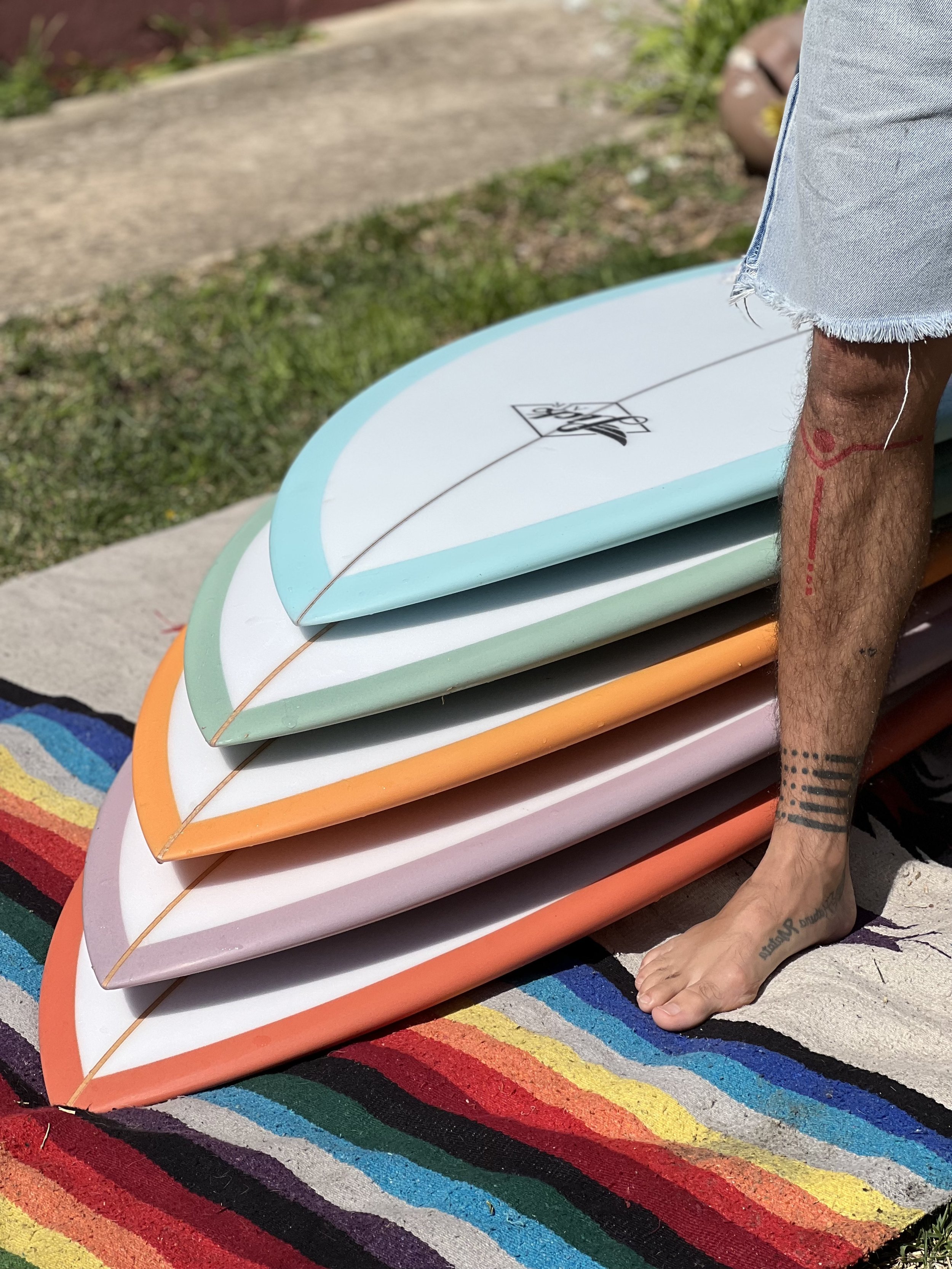 See a stock surfboard that you like? Get in touch. These stock rides are the result of our constant love for shaping, so reach out if you want one (they never last long) and buy a new surfboard online today.